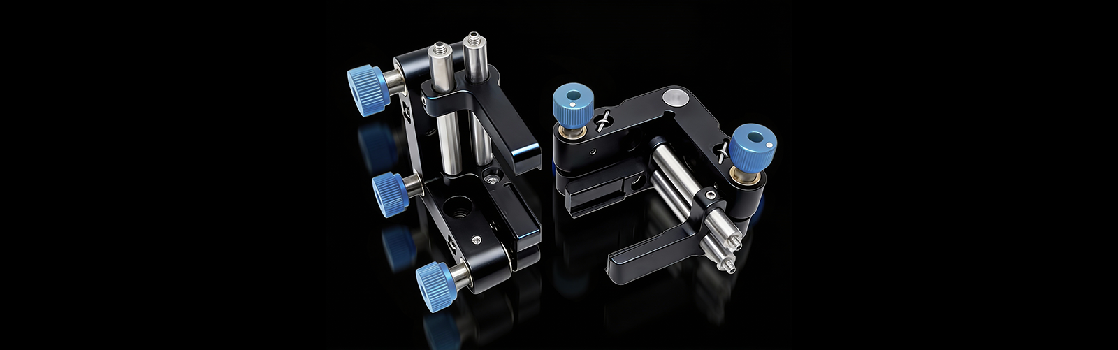 特性: • 高度可调的夹臂最高能安装33/65mm的光学元件; • 按装臂带有橡胶垫可有效增加于光学元件的接触面积; • 采用两个精密调节轴可实现±4°的俯仰偏摆调节; • 提供左右两种开口方向; • 背板两侧面带有M4沉头孔(带M6螺纹),方便安装接杆; Dimension-labs的可调式矩形光学调整架拥有高度可调的夹臂可以安装多种尺寸的柱面透镜或矩形透镜,夹臂通过橡胶垫压紧光学元件后使用1.5mm的六角扳手锁紧即可。橡胶垫长度为20.0mm,两款调整架的最大安装高度分别是33/65mm且拥有左右两种开口方向可选。调整架通过两个M6*0.25的精密调节轴驱动,可实现±4°的俯仰偏摆调节。调整架背板带有两个M4沉头孔(带M6螺纹)可直接于接杆连接。