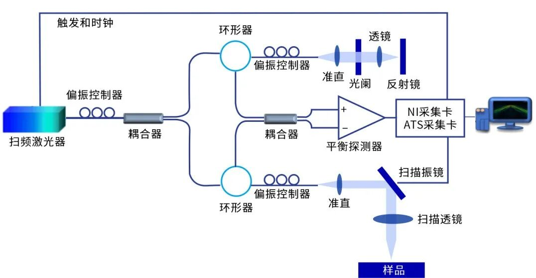 扫频激光器:1310nm / 1550nm 双波段可选,扫宽、扫描速率直接决定成像深度与速度;